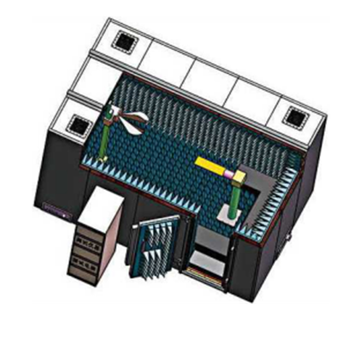 1.OTA2306的屏蔽殼體設計為上錐形下矩形,外廓尺寸(L)1045x(W)900x(H)2585mm±5mm,可移動設計。